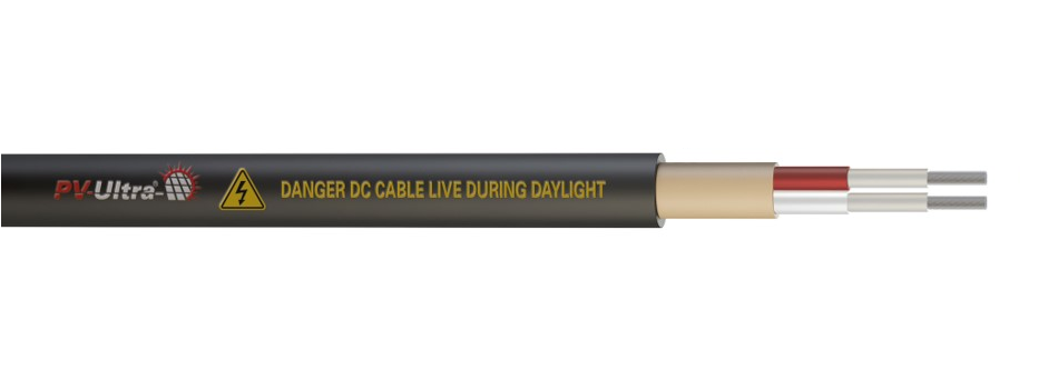 PV-Ultra® also includes a yellow warning print that further highlights the hazard that these cables are live during daylight hours.